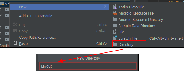 안드로이드 스튜디오의 Project 패널에서 해당 디렉토리를 마우스 오른쪽 버튼으로 클릭하고